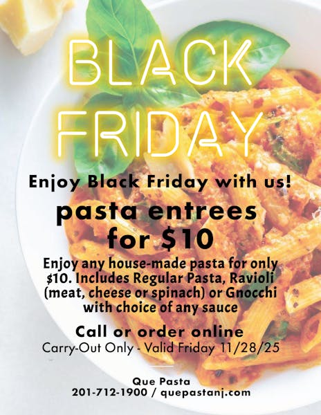 Sign up for future deals from Que Pasta. You can opt-out of email promotions at any time.